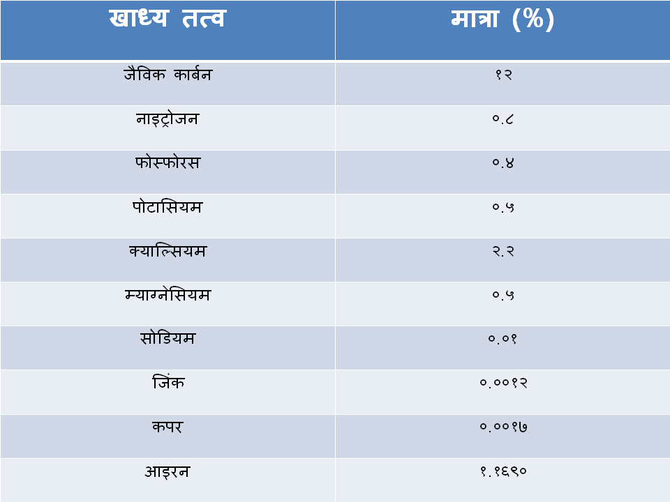 - राखेको ३ महिना पश्चात खाद्य तत्वले भरिएको कम्पोस्ट मल तयार हुन्छ ।