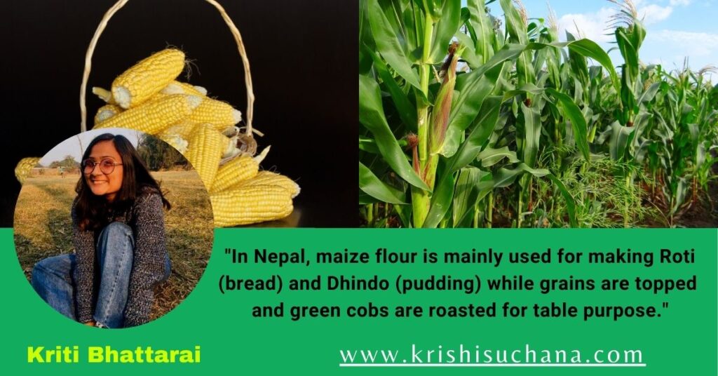 Maize protein “Zein” is deficient in Tryptophane and Lysine, the two essential amino acids. Maize grain has significant quantities of Vitamin A, nicotinic acid, riboflavin and Vitamin E. Green fodder is used as fodder for cattle and several industries like starch, miling, and cottage industries are based on maize products and byproducts.