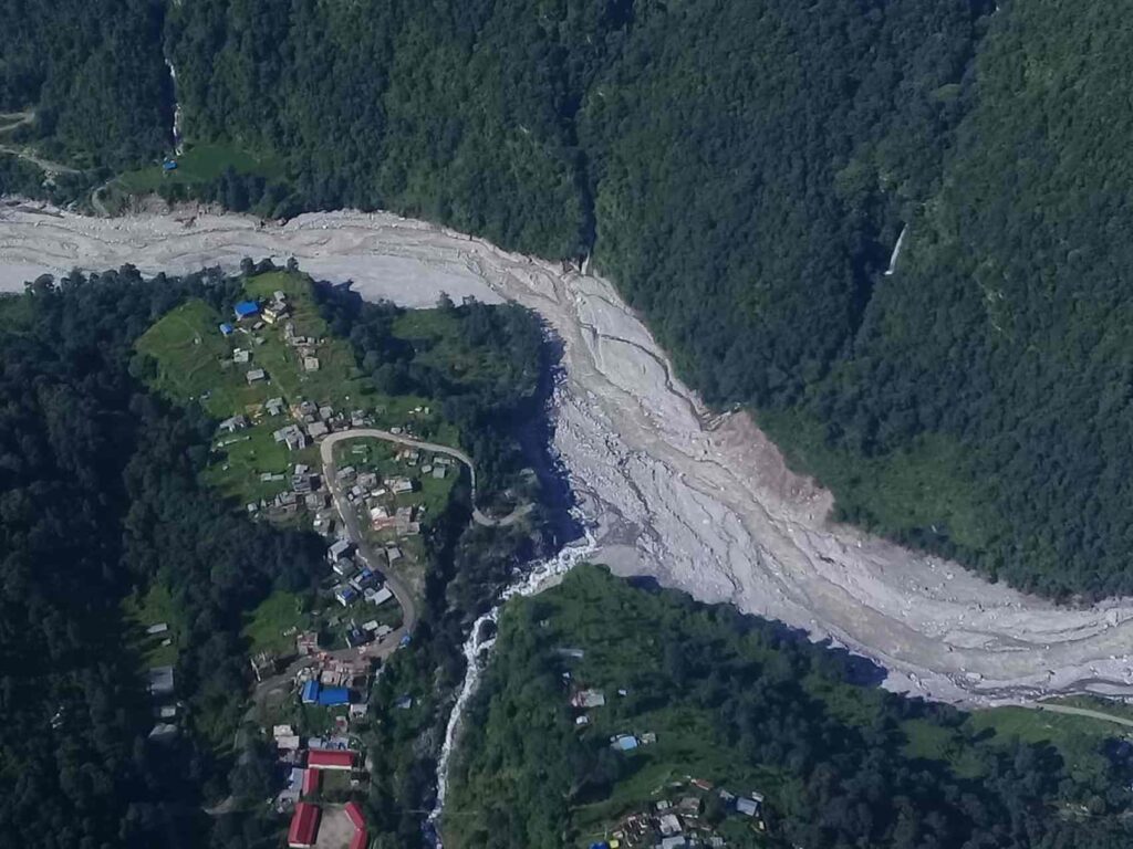 शनिबार भने दिनभर सिन्धुपाल्चोकको हेलम्बु क्षेत्रको मौसम सफा थियो । त्यसैले मेलम्ची खोलाका दायाँबायाँ किनारा चियाउन सकियो जहाँबाट बाढी र पहिराले छियाछिया पारेका तटीय बस्ती र अलिक परका गाउँ स्पष्ट देखिन्थ्यो । माथिबाट चियाउँदा लाग्थ्यो खोला किनारबाट सयौँ मिटर माथिसम्म पहाड थिल्थिलो परेको छ ।