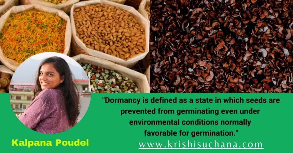 Seed may require proper base/substratum for their germination, when we provide all essentials , adequate water, temperature and air; without the proper base, seeds may be not germinated. Therefore, proper base/substratum should be included under the essentiality for germination and dormancy in seed may be also due to lacking of proper base/substratum. According to Wareing (1965) the term dormancy will be used in the sense where the viable Seed of a given species falls to germinate under conditions of moisture, temperature and oxygen supply which are normally favorable for the later stages of germination and growth of that species. A common misconception of seed dormancy is that it is merely a resting state in the absence of suitable germination condition. This state is often called Quiescence. However, true dormancy is defined as a state in which seeds are prevented from germinating even under environmental conditions normally favorable for germination.