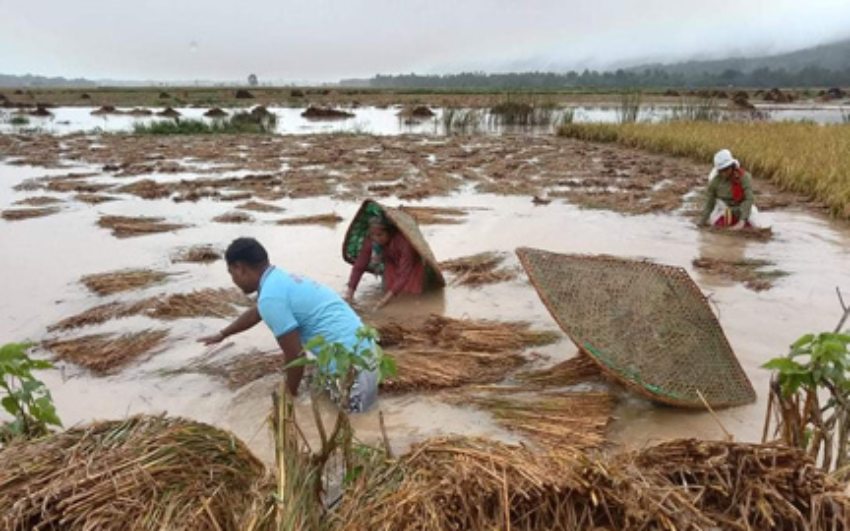 पिडामा किसान :अविरल वर्षाका कारण पाकेको धानबालीमा ठूलो क्षति