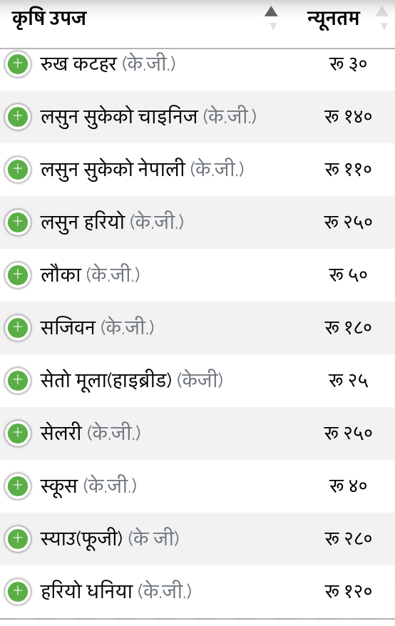 फलफूल तथा तरकारीको मूल्य हेर्न तलको लिंक क्लिक गर्नुहोस् ।