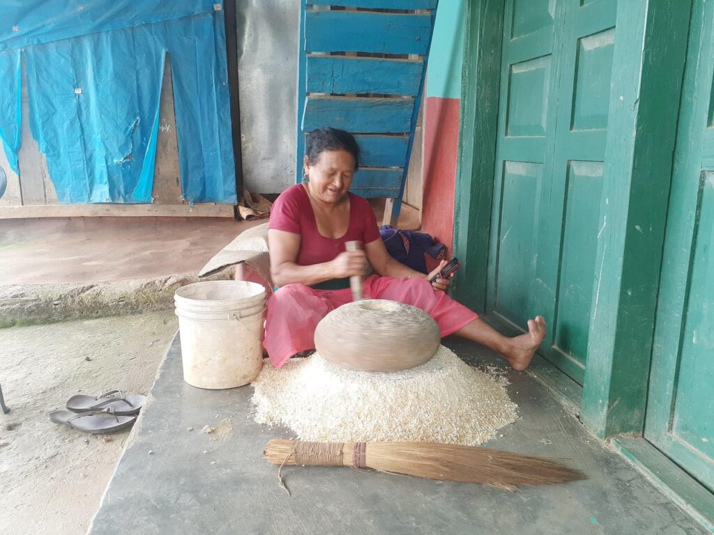 जिल्लाको ऋषिङ्ग गाउँपालिका–८ दुईघरे निवासी एक महिला जाँतोमा मकै पिस्दै । पछिल्लो समय गाउँघरमा पनि ढिकी र जाँतो बिरलै मात्रमा प्रयोग हुने गरेको पाइन्छ ।
