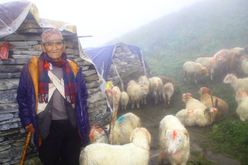 अन्नपूर्ण गाउँपालिका–५ पाउद्वारको खयरखोला क्षेत्रमा देखिने यो दृश्य निकै रमाइलो र लोभलाग्दो देखिन्छ । खोप्रा–खयर पदमार्गअन्तर्गत पर्यटक आश्रय लिएर बस्ने खयरखोला क्षेत्रमा व्यावसायिक भेडापालन पनि हुँदै आएको छ । यिनै गोठमा भेटिन्छन् ७८ वर्षीय लालवीर तिलिजा ।
