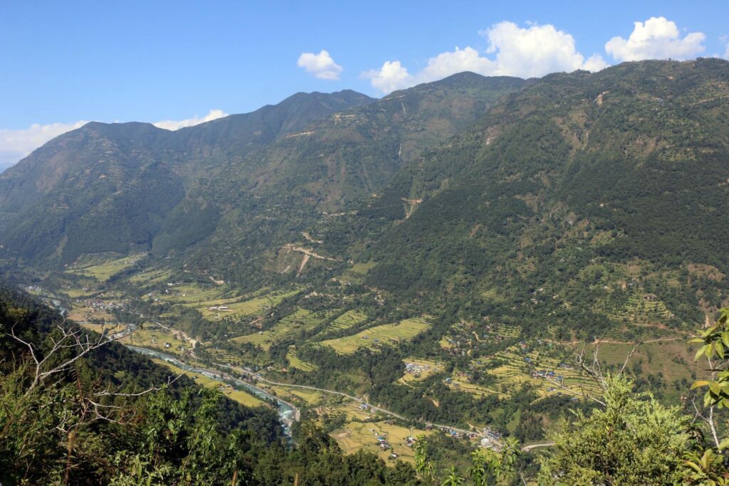 गुल्मीको मुसिकोट नगरपालिका-१ बाट देखिएको बागलुङको वडिगाड नदीसँगै मध्यपहाडी राजमार्ग र जलजला क्षेत्र ।
