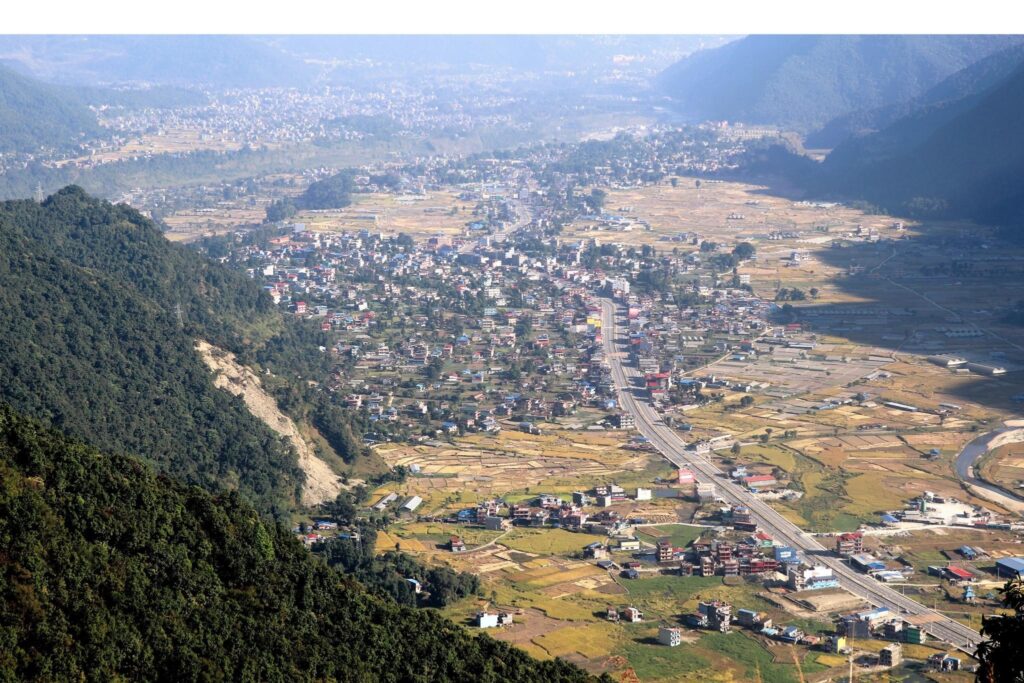 पोखरा महानगरपालिका–२५, हेम्जा बजार र बजारको बीच हुँदै गएको मध्यपहाडी राजमार्ग ।