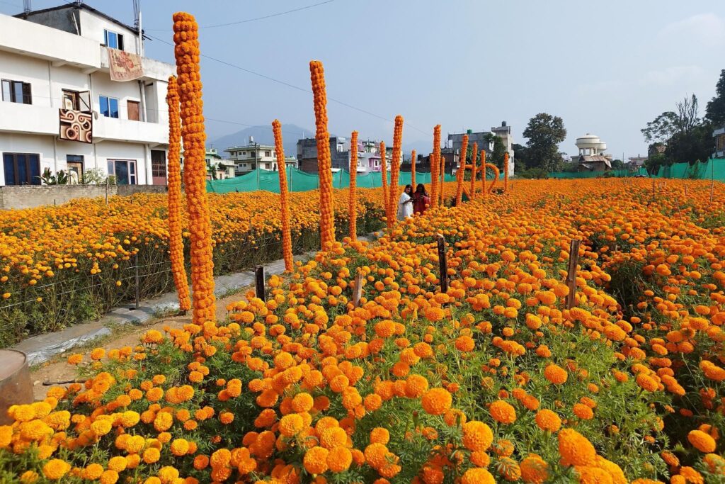दाङको घोराही–१५, भरतपुरमा भाष्कर पंगेनीले व्यावसायिक रुपमा गर्नु भएको सयपत्री फूलखेतीमा टिकटक बनाउन पुगेका स्थानीयवासी ।