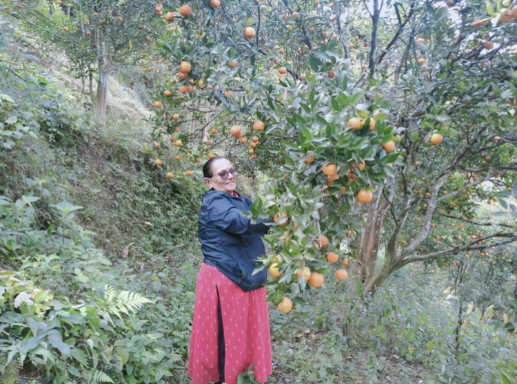 घरको आँगन, डिल तथा आसपासका बारी तथा कान्लामा सुन्तला लटरम्म फलेका छन् । घर वरिपरि रहेको सुन्तला बगैँचा पहेँलपुर छ । झट्ट हेर्दा जोकोही पनि मन आनन्दित र प्रफुल्लित हुने गर्छ । विगत वर्षको तुलनामा यस वर्ष सुन्तला अत्यधिक फलेकाले पनि बोटले फल धान्न नसकेर हाँगा लाछिएका छन् । केही बोटलाई एक दुई वटा टेका दिइएको छ ।