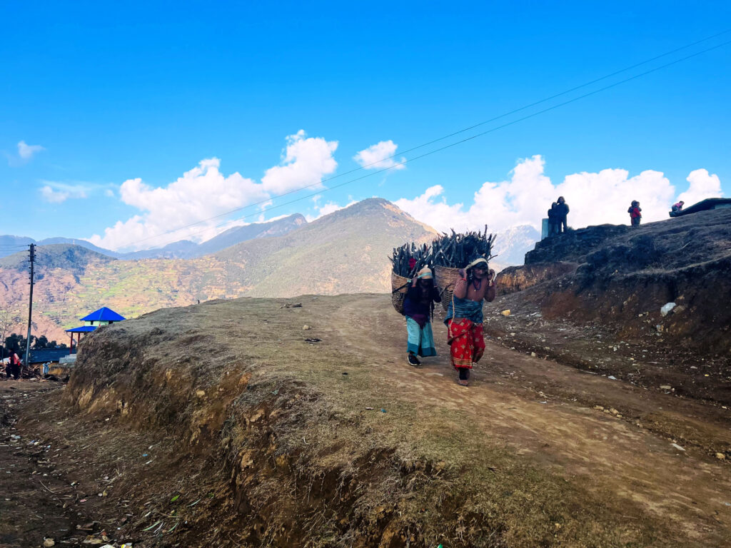 दाउरा सङ्कलन गरेर ल्याउँदै स्थानीय महिला