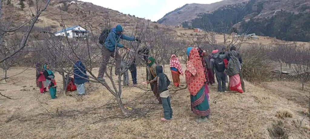 स्याउका बिरुवा काँटछाँट सिकाइँदै