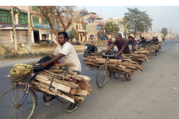 जङ्गलबाट दाउरा लिएर घर फर्किँदै युवा