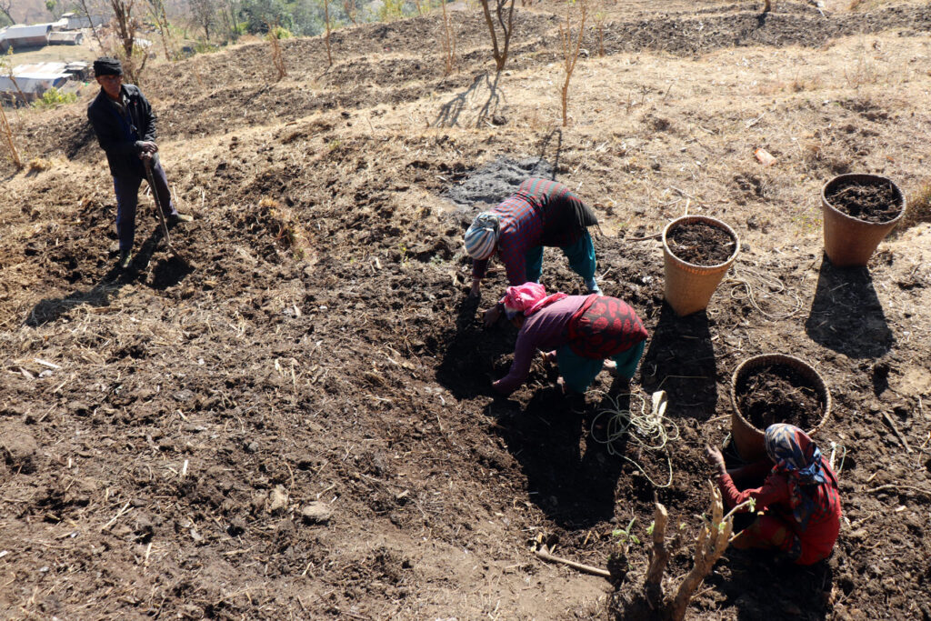 बारीमा मकै लगाउनलाई प्राङ्गारिक मल मिलाउँदै