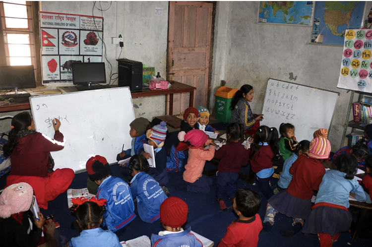 नर्सरी तहका विद्यार्थीलाई पढाउँदै गर्नुभएकी शिक्षिका निर्मला पोखरेलले सिकाइ प्रभावकारी हुन नसकेको गुनासो गर्नुभयो । “हामी त बाध्य भएर यसरी पढाउँदै छौँ”, उहाँले भन्नुभयो, “विद्यार्थीलाई पढ असहज भएको छ, एकैपटक एउटै कोठामा फरक कक्षाका विद्यार्थीलाई दुई जनाले पढाउँदा समस्या नै हुन्छ ।”