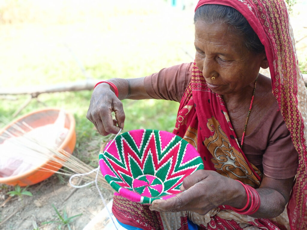 थारु पौराणिक हस्तकलाको सामग्री मना (ढाकी) बनाउँदै सुनसरीको रामधुनी नगरपालिकाकी रामवती चौधरी । थारु महिलाको विशेष सीपको रुपमा लिइने हस्तकलाका विषयमा युवापुस्ताले चासो नदिँदा लोप हुने अवस्थामा पुगेको छ ।