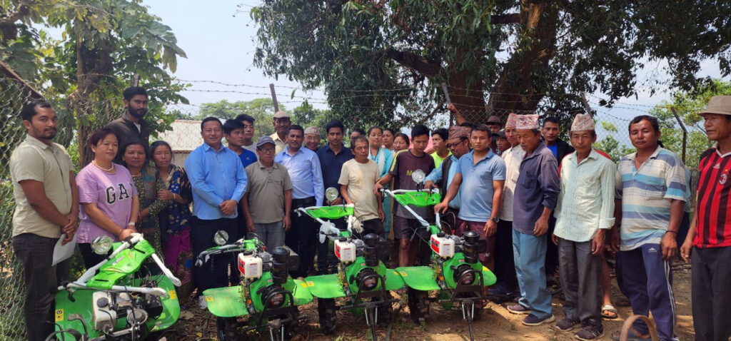 भोजपुर:कृषकलाई कृषि सामग्री हस्तान्तरण गर्दै पौवादुङमा गाउँपालिका अध्यक्ष किरण राई । पौवादुङमा गाउँपालिका–६ ठुलोदुम्माका कृषकहरुलाई चार ओटा मिनिटिलर, इलेक्ट्रिक स्प्रे ३१ ओटा, मल्चिङ प्लाष्टिक ४७ थान, प्लाष्टिक पोखरी १४ ओटा, १५ ओटा प्लाष्टिक टनेललगायतका कृषि सामग्री वितरण गरिएको वडाध्यक्ष दक्षकुमार राईले जानकारी दिनुभयो ।