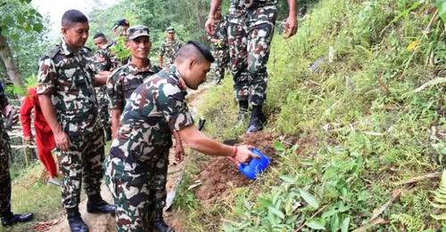 सेनाको ‘गो ग्रिन क्याम्पेन’ कार्यक्रमअन्तर्गत इनामे सामुदायिक वनको खालीपाखा टङटङेमा वृक्षरोपण गरिएको हो ।