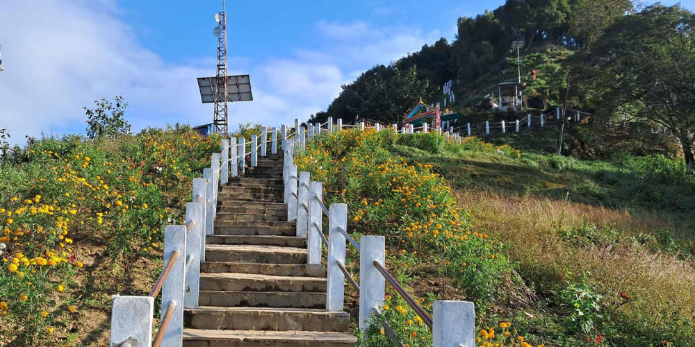 खोटाङ:किरात ऐतिहासिकस्थल मझुवागढी जाने पदमार्ग दायाँबायाँ रोपिएका विभिन्न प्रजातिका फूल अहिले ढकमक्क फुलेका छन् । धार्मिक तथा पर्यटकीयस्थल मझुवागढी जाने फलामे रेलिङसहितको पदमार्ग दायाँबायाँ रोपिएका सयपत्री, मखमली, गोदावरी, चिचुचाङ्गे, बगान बेलिया, लालुपातेलगायत फूल ढकमक्क फुलेको देख्दा त्यहाँ पुग्ने जोकोही मानिसको मन लोभिने गरेको छ ।