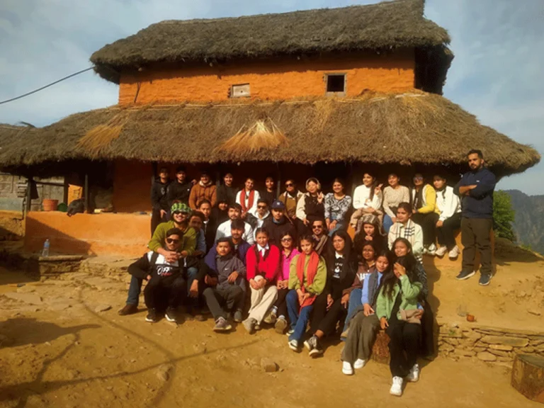 पर्यटकका रोजाइमा खरको छानो भएको घर