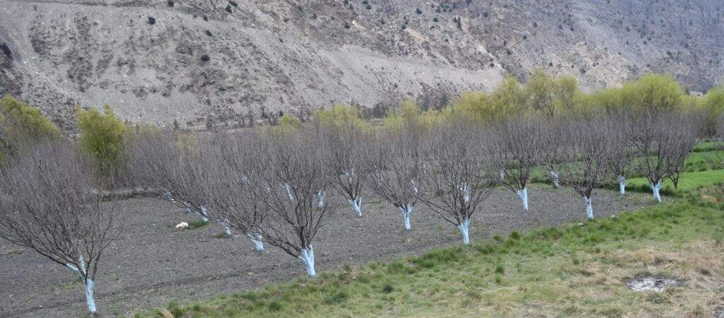 मुस्ताङको मार्फामा कृषकहरुले गोडमेल र मलजल गरेर चिटिक्क पारिएको स्याउबारी ।