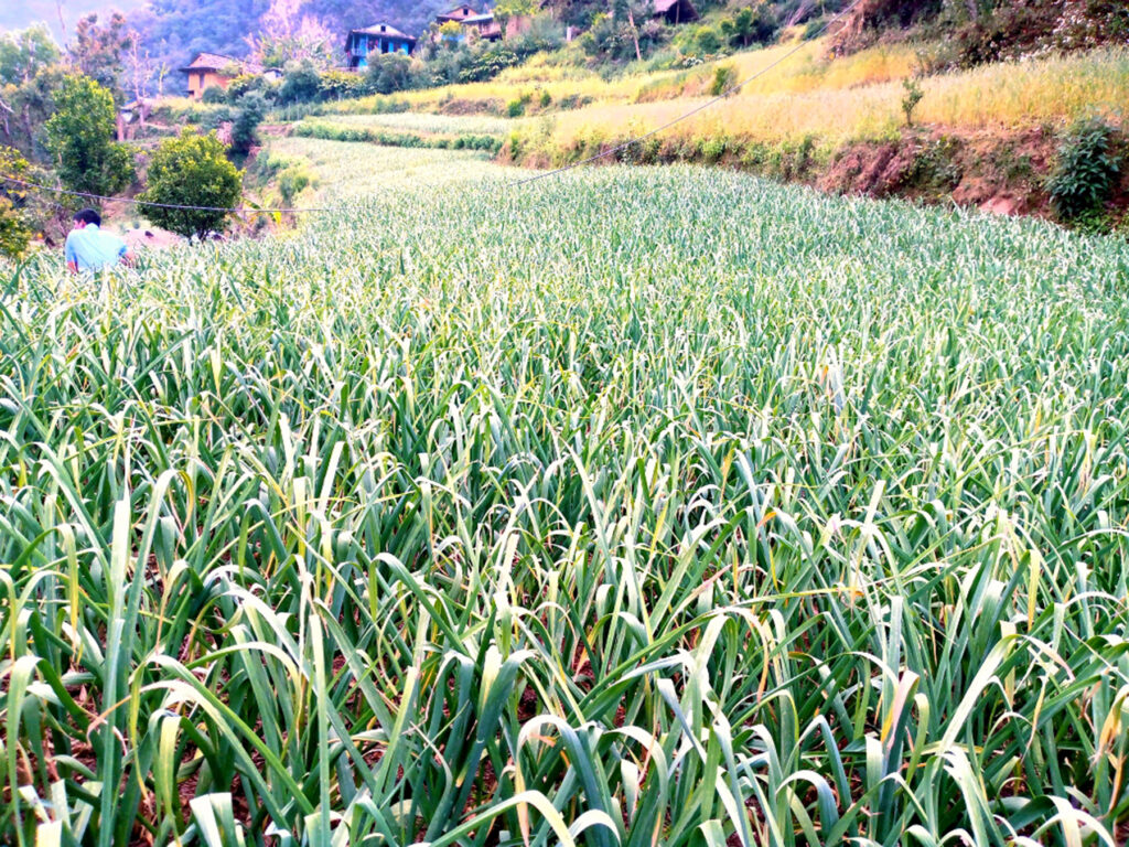 त्रिवेणी(रुकुम पश्चिम), २६ चैतःरुकुम पश्चिम जिल्लाको मुसीकोट नगरपालिका–१० झ्याङगाउँका स्थानीयले लगाएको लसुन खेती । सोही गाउँका २६ घरपरिवारले व्यावसायिक रूपमा लसुन खेती गर्दै आएका छन् ।