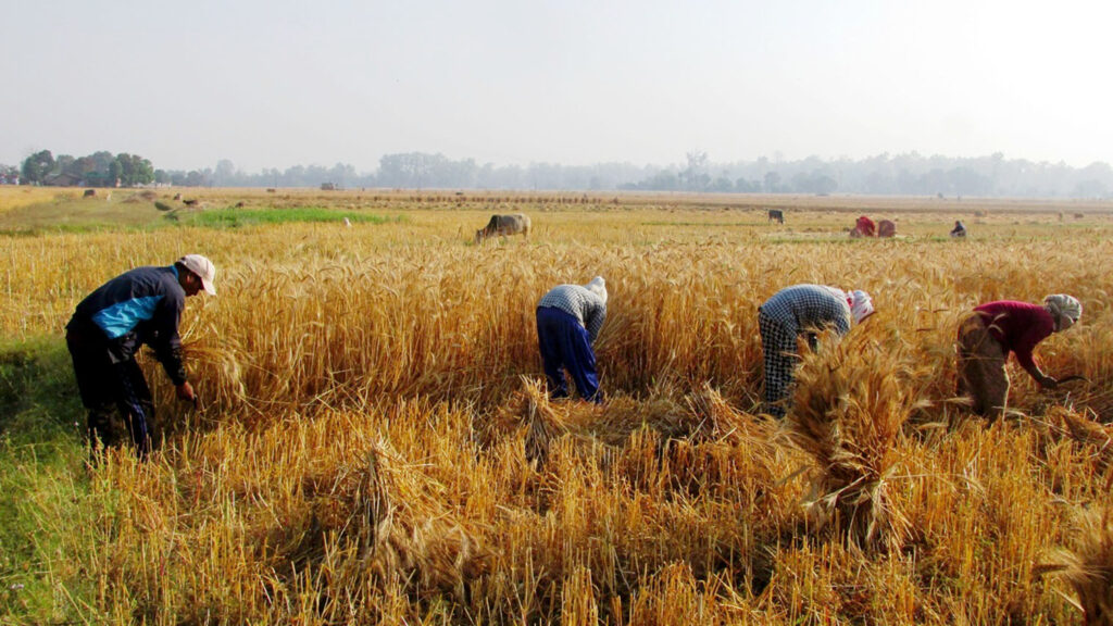 कञ्चनपुर, २७ चैत : शुक्लाफाँटा नगरपालिका २ ढकनियाका किसान खेतमा पाकेको गहुँ काट्दै । अहिले गाउँघरमा किसानलाई गहुँ काट्ने चटारो छ ।