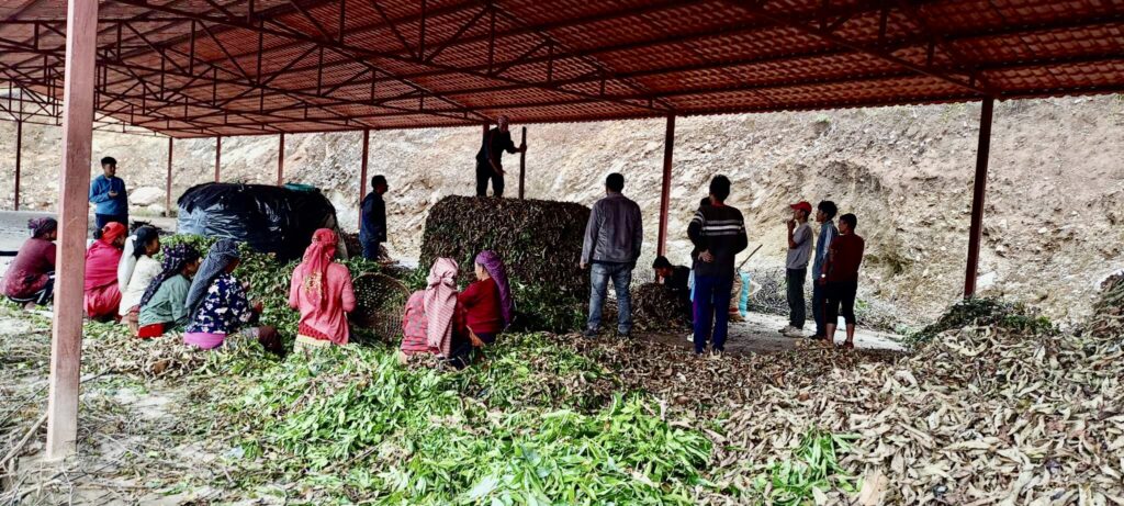 “प्रधानमन्त्री रोजगार कार्यक्रमअन्तर्गत एक दर्जन युवाले जङ्गलमा खेर गइरहेको पात, पतिङ्गर र झाडी सङ्कलन गरी पराङ्गारिक मल बनाउन थालिएको छ । पहिलो चरण्मा दुई हजार पाँच सय केजी मल बनाउन थालेका छौँ । उक्त मललाई रेशको चिया बगानमा प्रयोग गरिने र चियाको उत्पादन बढाउने योजना छ”, वडाध्यक्ष लामिछानेले भन्नुभयो ।