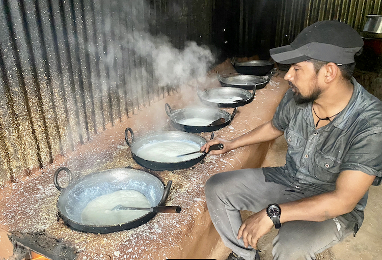 काभ्रेपलाञ्चोक, १ साउनःकाभ्रेपलाञ्चोकको बेथानचोक गाउँपालिका–२ स्थित गेल्डुङ बजारमा रहेको देउराली खुवा उद्योगमा खुवा बनाउन दूध घोट्दै व्यवसायी । उक्त बजारमा रहेका करिब दर्जन खुवा उद्योगले स्थानीय बजारमा प्रतिकिलो रु सात सयमा बिक्री गर्दै आएका छन् ।