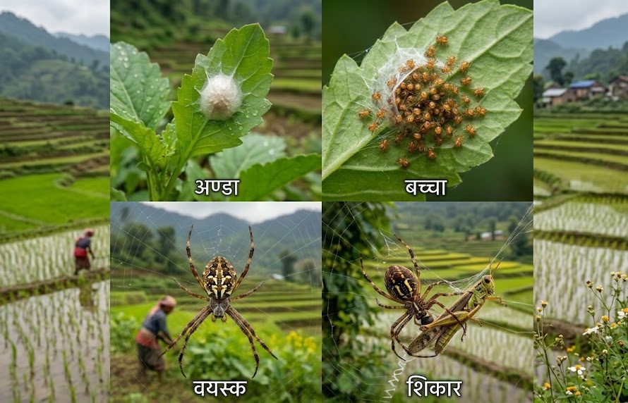 • ‘स्पाइडर नर्सरी’ बनाउने: बाली काटिसकेपछि खेतको कुनामा पराल वा बाँसका कप्टेरा प्रयोग गरी स-साना सेल्टर (आश्रयस्थल) बनाइदिने।