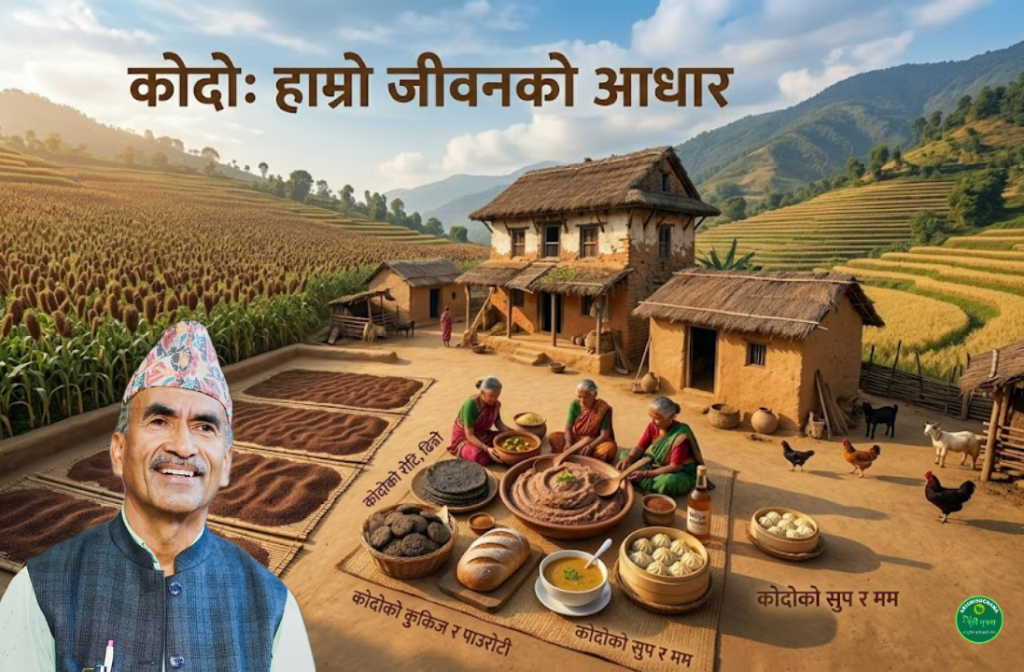 (लामो समयदेखि नेपाली माटो र मौलिक जीवनशैलीको उत्थानमा लाग्नुभएका तिलक ढकालज्यूको यो प्रस्तुतिले हराउँदै गएका कोदोका प्रजातिहरू जोगाउन र परनिर्भरता घटाउन हामी सबैलाई झकझक्याएको छ। )
